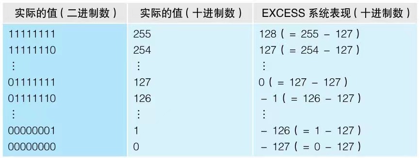 EXCESS系统表现是指通过将指数部分表示范围的中间值设为0,使得负数不需要用符号来表示;