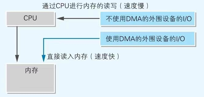 DMA是指在不通过CPU的情况下外围设备直接和主内存进行数据传送;