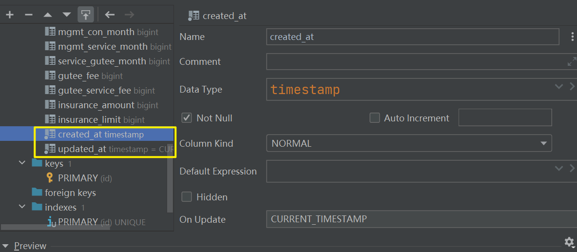 如果你想测试这个效果,需要先删除之前的表,再次创建时才会看到效果。