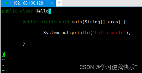 使用 vim 开发一个 Hello,java 程序,保存.步骤说明和演示