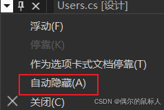 3:点击服务器资源管理器选项卡-右侧的倒三角-选择自动隐藏