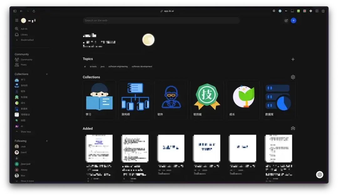 你可以创建多个知识集合,将自己珍藏多年的PDF 、文章链接等传到知识库中:
