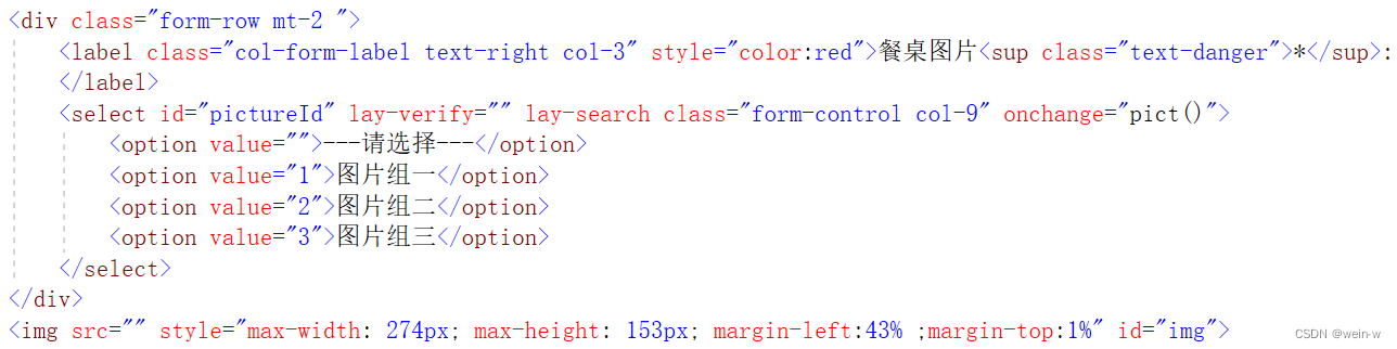 Html代码,onchange事件就是为了监听下拉框值改变然后对图片进行更改操作;