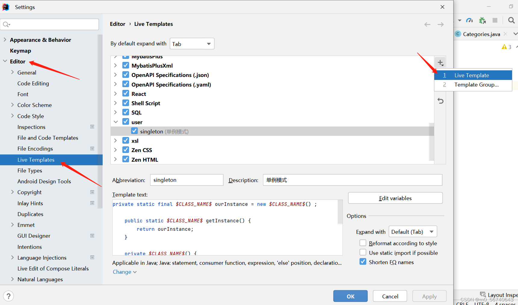 利用live-template自动创建单例类