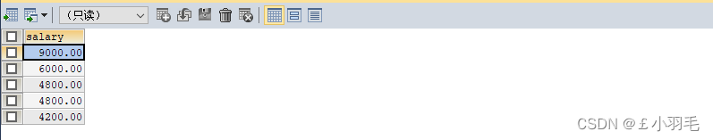 SELECT salary FROM employees WHERE job_id = 'IT_PROG'这个sql的执行结果是: