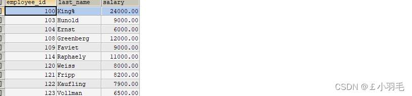 #按照工资降序排列,工资相同则按照姓名升序排列 SELECT `last_name`,`salary` ,salary * 10 sals FROM `employees` ORDER BY sals;======