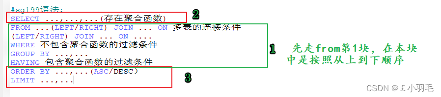 把整个select语句分为3块,按照下图标注的块顺序执行