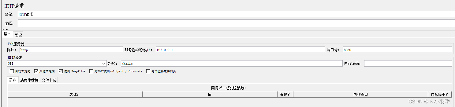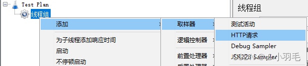 一个具体的请求,是通过 Sampler 取样器 来 定义的,最常用的就是这个 HTTP请求取样器。