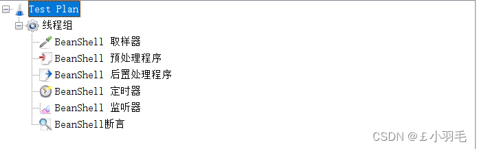 在jmeter中有如下6种BeanShell,BeanShell有本身的语法,同时支持java语法