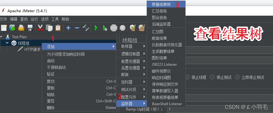 线程组右键,添加-监听器-查看结果树