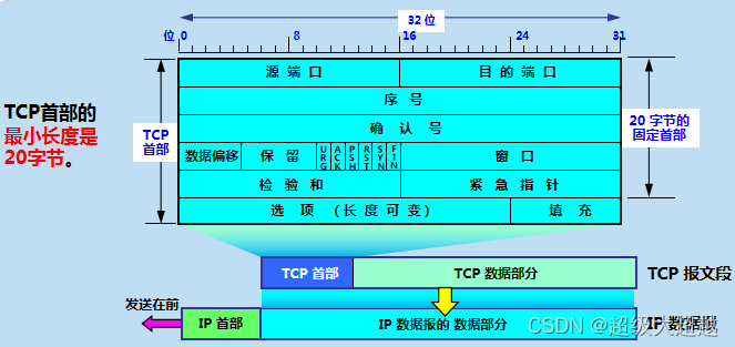 TCP报文段首部的20字节是固定的,后面有 4n 字节是根据需要而增加的选项 (n 是整数),因此TCP首部的最小长度是20字节。最大长度是60字节,由数据偏移确定1