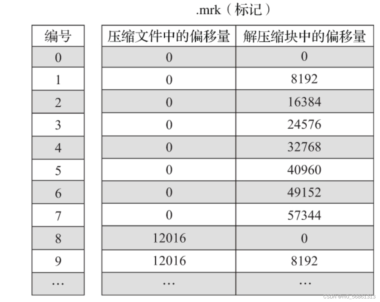 | column.mrk2 | 如果使用了自适应大小的索引间隔,则标 记文件会以.mrk2命名 |
