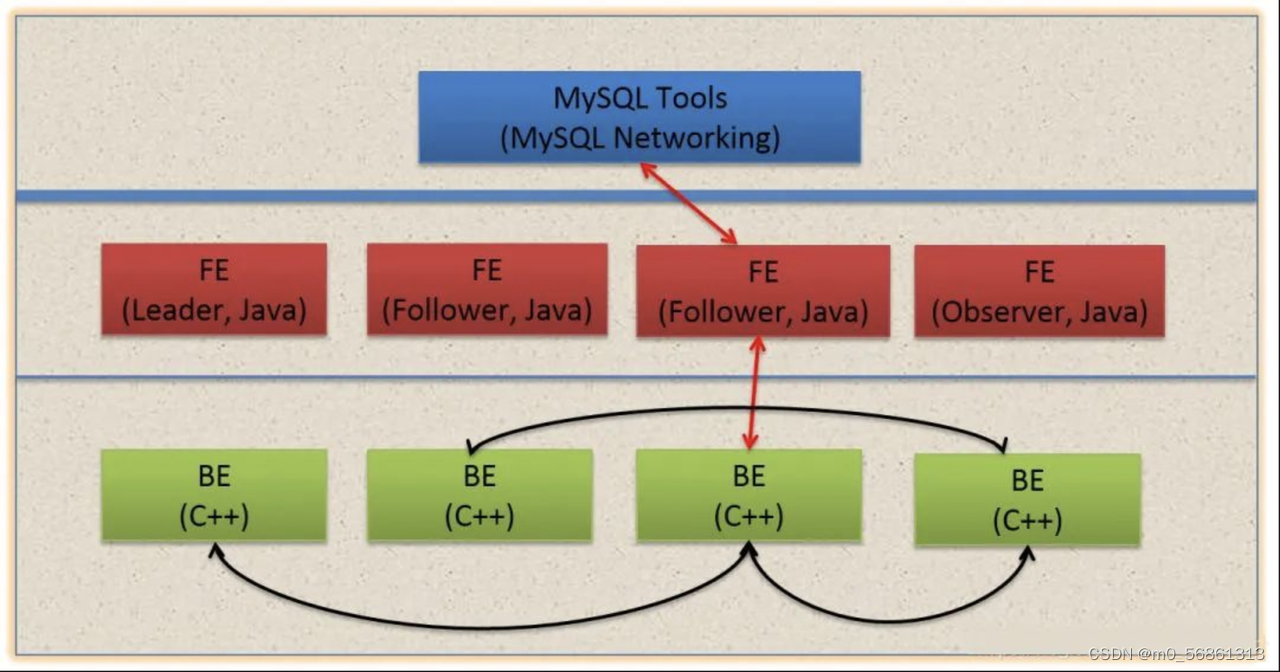 FE 还会对 BE 发起心跳检测,并定期进行集群的负载均衡操作。Doris 也支持多 FE 实例部署,通过选主机制实现高可用。