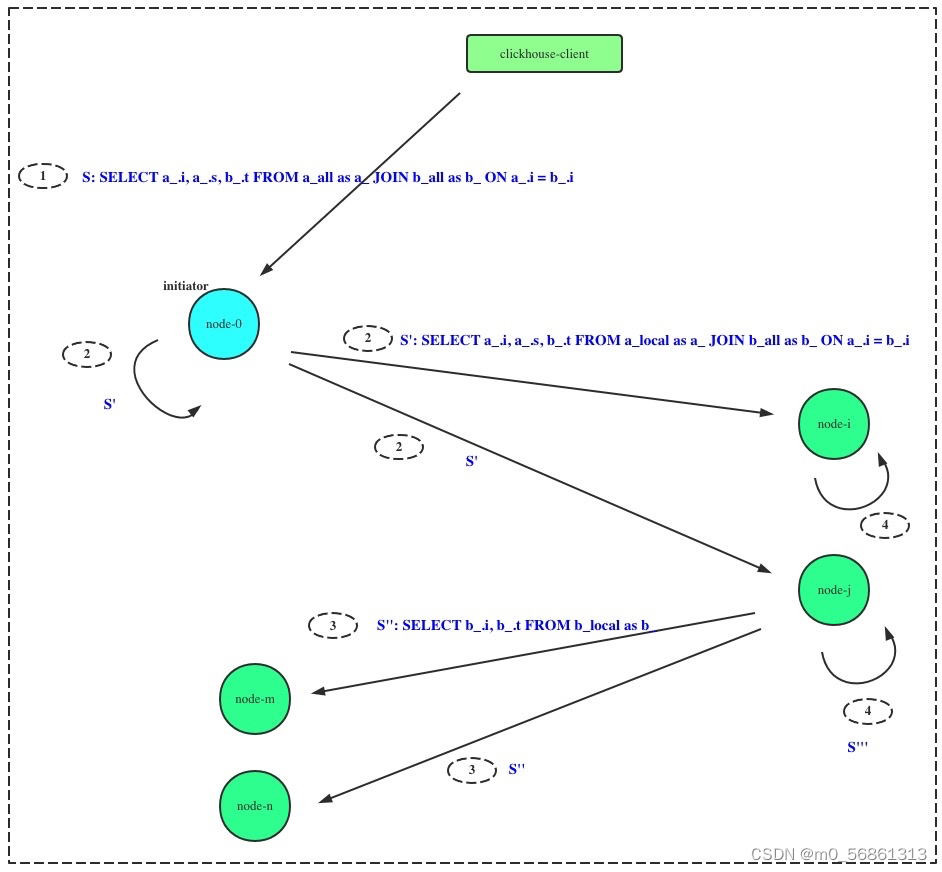 ClickHouse集群并未实现完整意义上的Shuffle JOIN,实现了类Broadcast JOIN,通过事先完成数据重分布,能够实现Colocate JOIN。