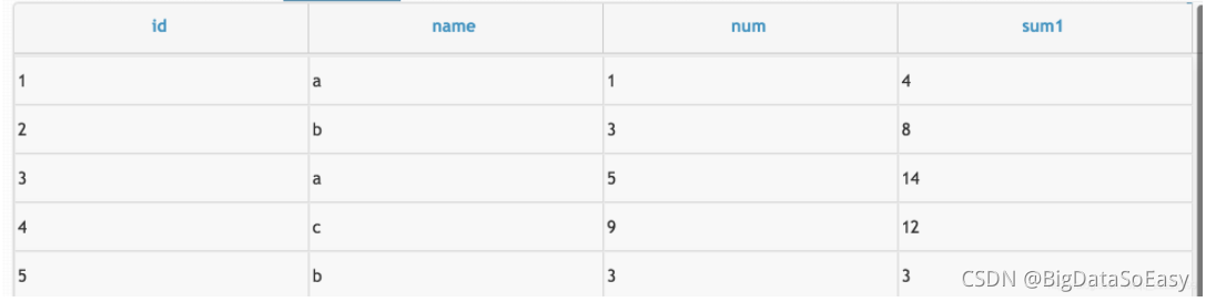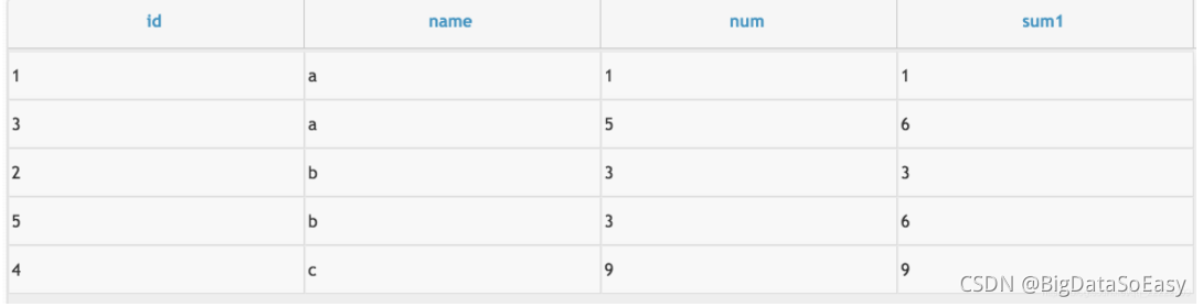 - over(order by id) id=1的窗口只有一行,id=2的窗口包括id=1,id=2