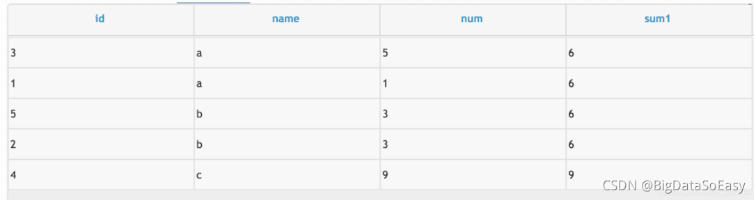 - over(partition by name order by id) 每一行根据 name来区分窗口,再根据order by 取具体的范围