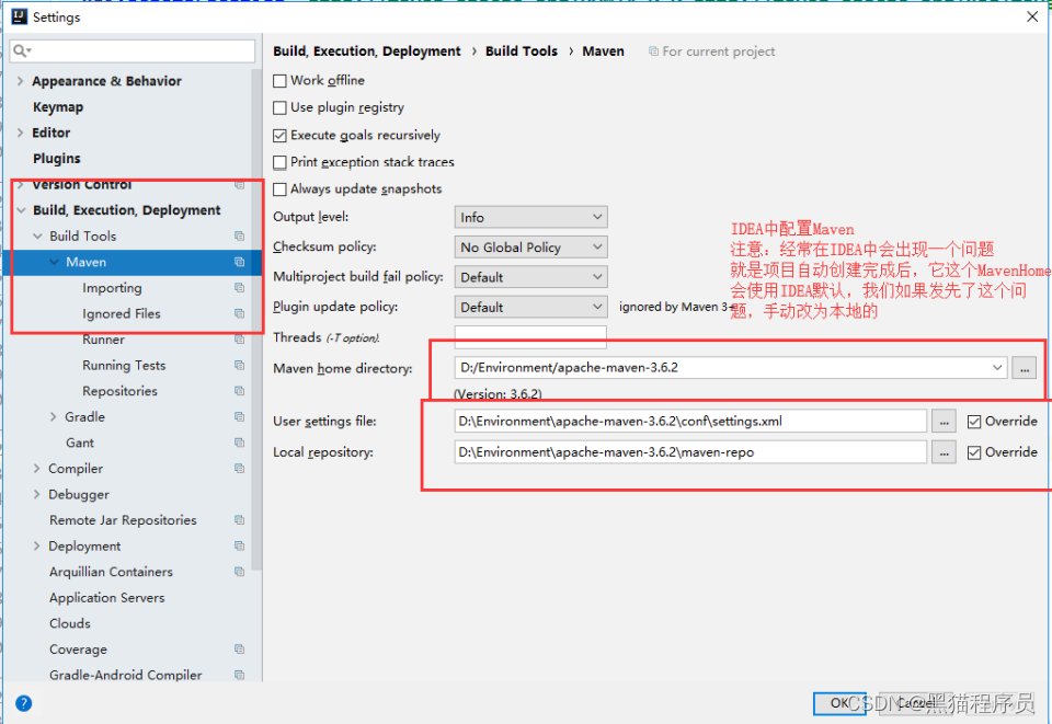 注意:IDEA项目创建成功后,看一眼Maven的配置