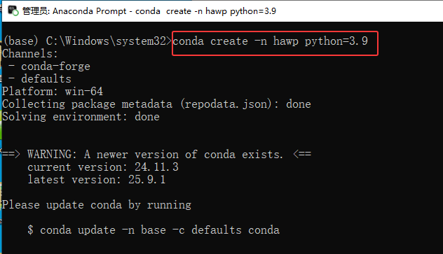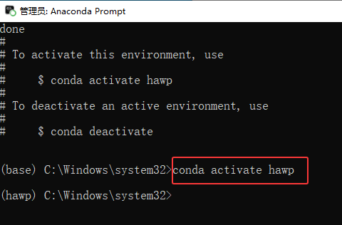 1、创建并激活hawp虚拟环境(需提前安装Anaconda)