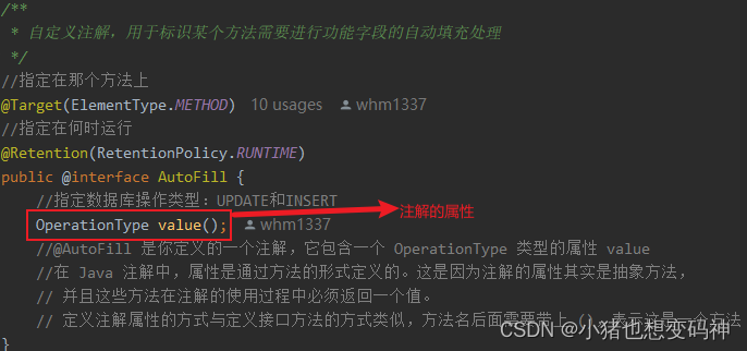 ①首先自定义注解,用于标识需要进行公共字段自动填充