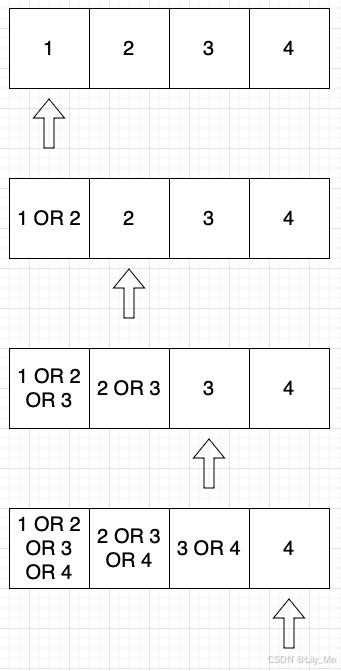 nums[j] |= x # 现在 nums[j] = 原数组 nums[j] 到 nums[i] 的 OR