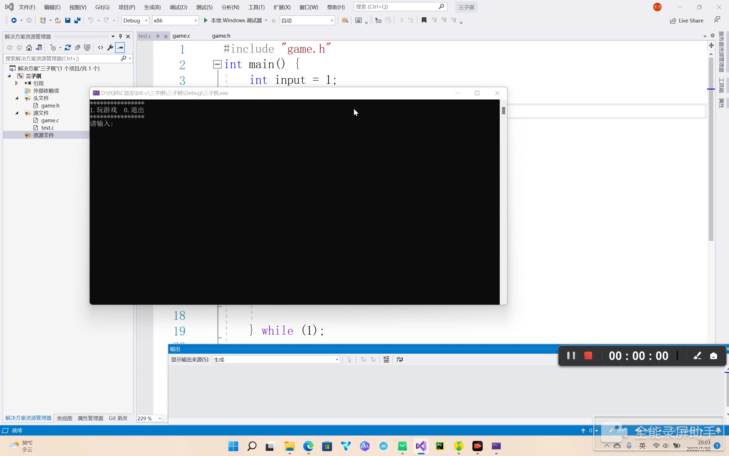 一个例子让你明白getcahr()吃回车 这个例子中我输入一个a,他会输出a和一个回车,在计算机当中输入时会有一个输入缓冲区我们键盘输入的内容会先存入到输入缓冲区内,程序会在输入缓冲区中读函数,与scanf("%s",str)遇见空格回车换行就停止读入不同,getchar()和scanf("%c",&a)一样每次从输入缓冲区内读入一个字符也会读回车,因为我们输入时必须要按回车但回车会被放到输入缓冲区中被读到。......