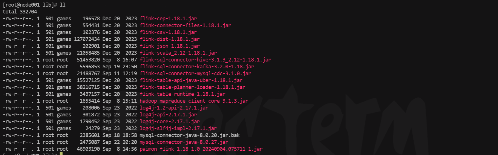 查看我的flink的lib目录,我的mysql-connector原来的版本是8.0.20的,flink的cdc-mysql的版本为3.2.0,是个很新的版本,网上搜索说是因为flink包里面的依赖和mysql自身的依赖冲突了,需要替换mysql-connector的版本为8.0.21或以上。