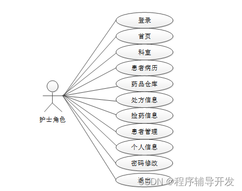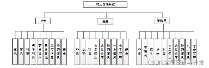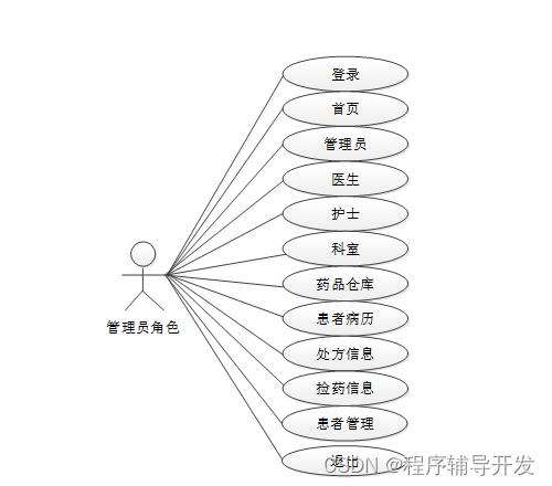 通过2.3功能的分析,得出了本病历管理系统的用例图: