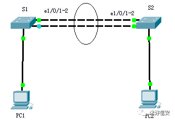 实验链路聚合的条件1、端口必须处于相同的VLAN之中。2、端口必须使用相同的传输介质。3、端口必须都处于全双工工作模式。4、端口必须是相同传输速率的端口。网络拓扑。