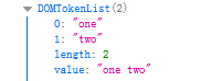 控制台输出了一个 DOMTokenList 对象,该对象包含了元素的全部属性,我们可以通过索引来读取元素的类名。