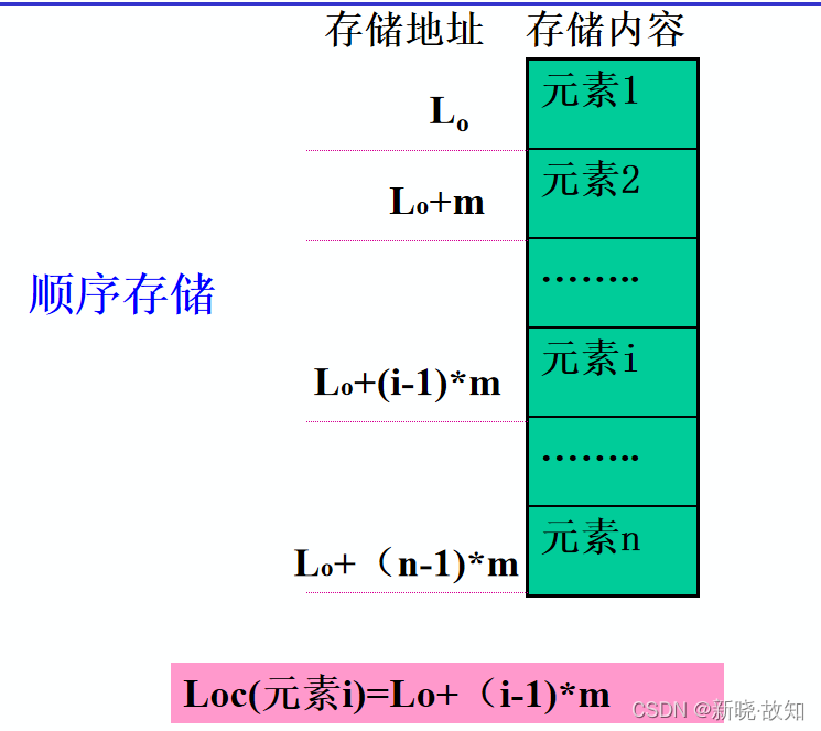 ◆顺序存储结构——借助元素在存储器中的相对位置来表示数据元素间的逻辑关系
