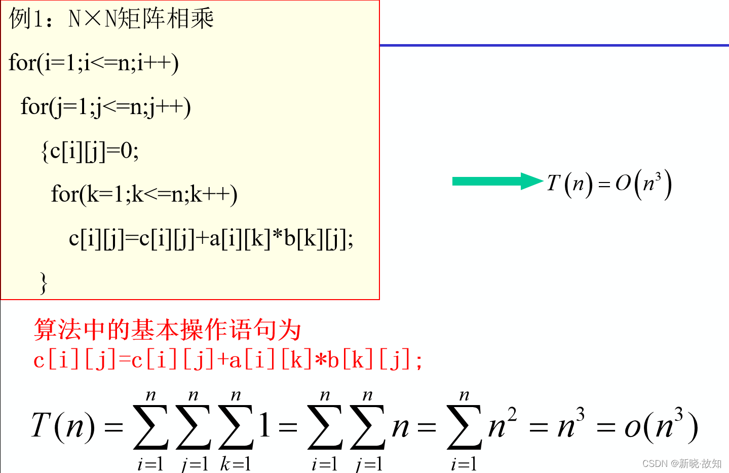 N×N矩阵相乘 for(i=1;i<=n;i++) for(j=1;j<=n;j++) {c[i][j]=0; for(k=1;k<=n;k++) c[i][j]=c[i][j]+a[i][k]*b[k][j]; }题例5: