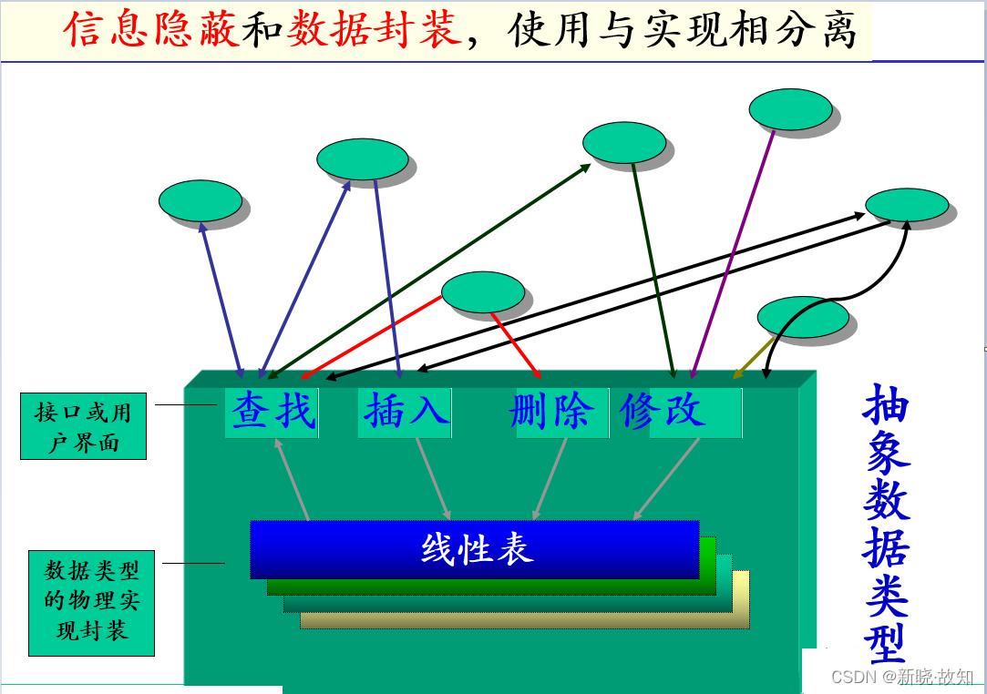 抽象数据类型可以通过固有的数据类型(如整型、实型、字符型等)来表示和实现。它有些类似C语言中的结构(struct)类型,但增加了相关的操作 教材中用的是类C语言(介于伪码和C语言之间)作为描述工具