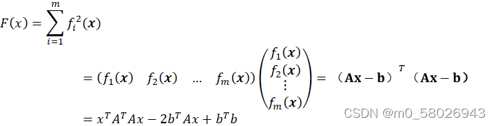 然后就是如何令F(x)最小,这里可以借助矩阵去计算(这样做能很好分析,并运用到算法里)。