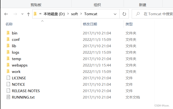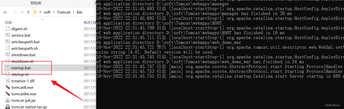 bin:放置的是Tomcat一些相关的命令,启动的命令(startup)和关闭的命令(shutdown)等等