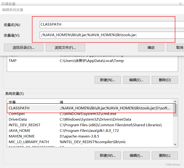 第三步在“系统环境变量”中编辑或新建变量名“path” 及“classpath"。path和CLASSPATH的值如下图所示。