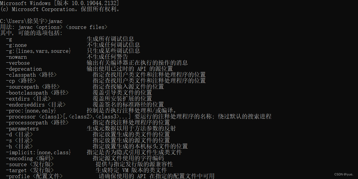 最后在Windows中打开命令行窗口,输入javac,若出现如图1-3所示的界面,即表明JDK安装、配置成功。