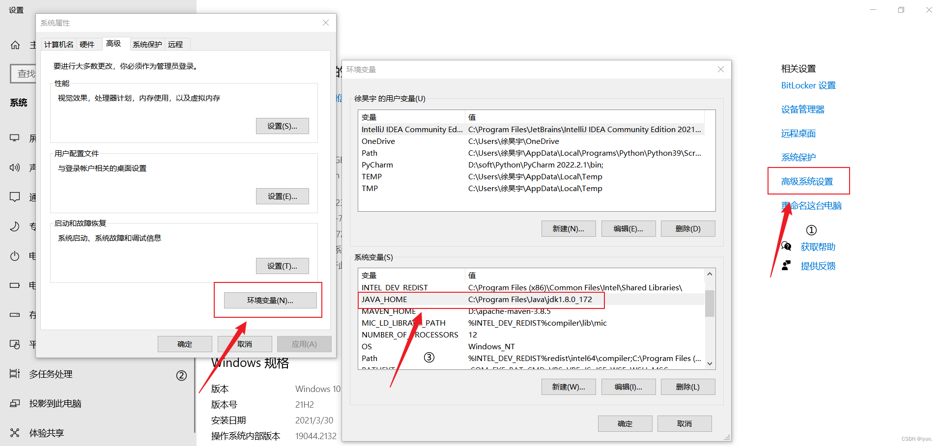 第二步我们需要配置环境变量,右击“我的电脑”,在弹出的快捷菜单中选择“属性高级一环境变量”,在“系统环境变量”中,新建变量名“JAVA_HOME",值为JDK的安装路径也就是我们第一步复制的路径。