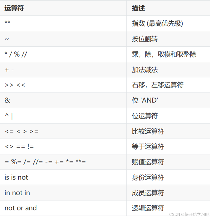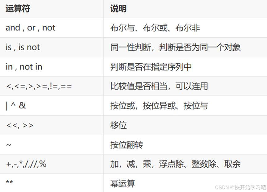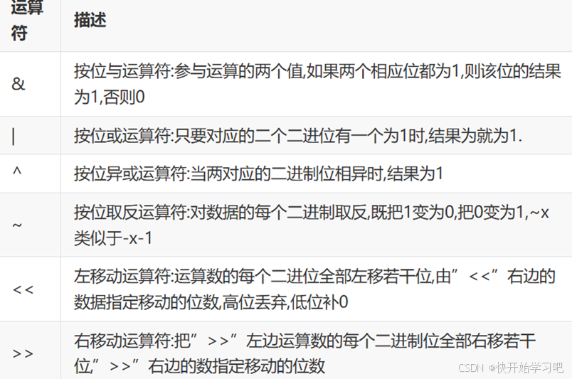 按位运算符是把数字看作二进制来进行计算的。Python中的按位运算法则如表所示。