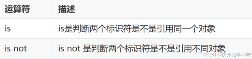 == 用于判断引用变量引用对象的值是否相等,默认调用对象的 __eq__()方法。