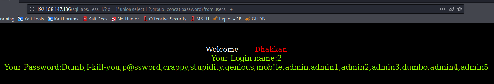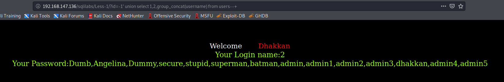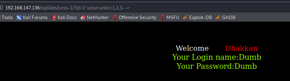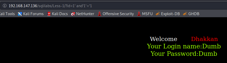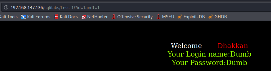 【此处说明:当 and1=*(*代表2,3,4,5,6……)时,页面仍显示正确】