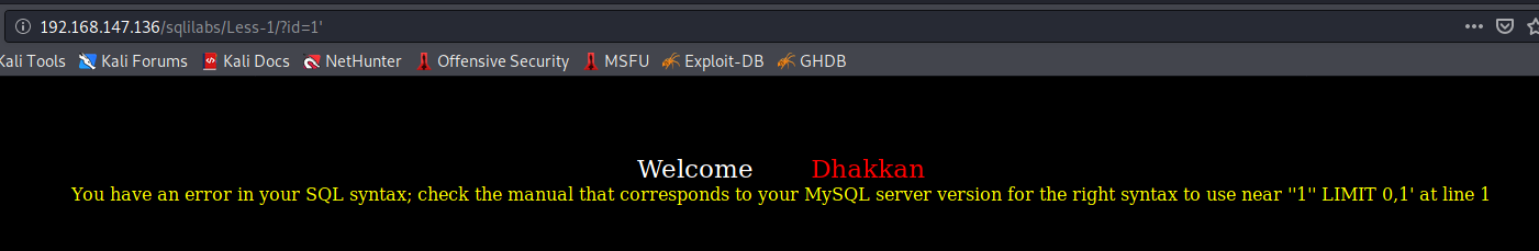 页面出现错误,说明可能存在注入点,按照常规性思维,进一步判断其是字符型还是数字型: