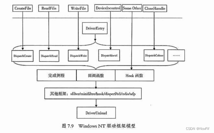 当应用程序调用一个有关 I/0的 API(例如 WriteFile)时,实际上这个API被封装在应用层的某个 DLL库(例如kemel32.d 和 user32.dl)文件中。而 dll动态库中的函数的更底层的函数包含在 ntdll.dll 文件中,也就是会调用在 ntdll.dll 中的 Native API函数。ntdll.dll中的Natvie API函数是成对出现的,分别以“Nt”和“Zw”开头(例如ZwCreateFile、NtCreateFile )。在 ntdll.dll 中,它们本质上是一样的,只是名字不同。