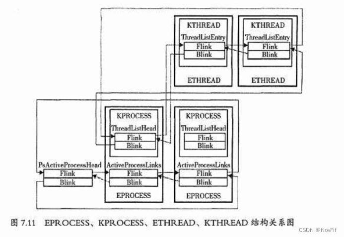 ETHREAD结构中,第1个成员就是线程对象KTHREAD成员,所有的ETHREAD结构也被放在一个双向链表里进行管理。EPROCESS 和 ETHREAD结构都是通过双向循环链表组织管理的。一个EPROCESS结构中包含了一个KPROCESS结构,而在一个KPROCESS结构中又有一个指向ETHRAD结构的指针。在ETHREAD结构中,又包含了 KTHREAD 结构成员。