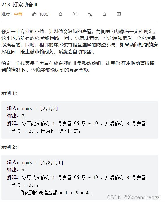 动态规划学习- 打家劫舍2 题目描述:动态规划分析:代码:class Solution {public: int rob(vector<int>& nums) { int n=nums.size(); if(n==0) return 0; if(n==1) return nums[0]; if(n==2) return max(nums[0]..