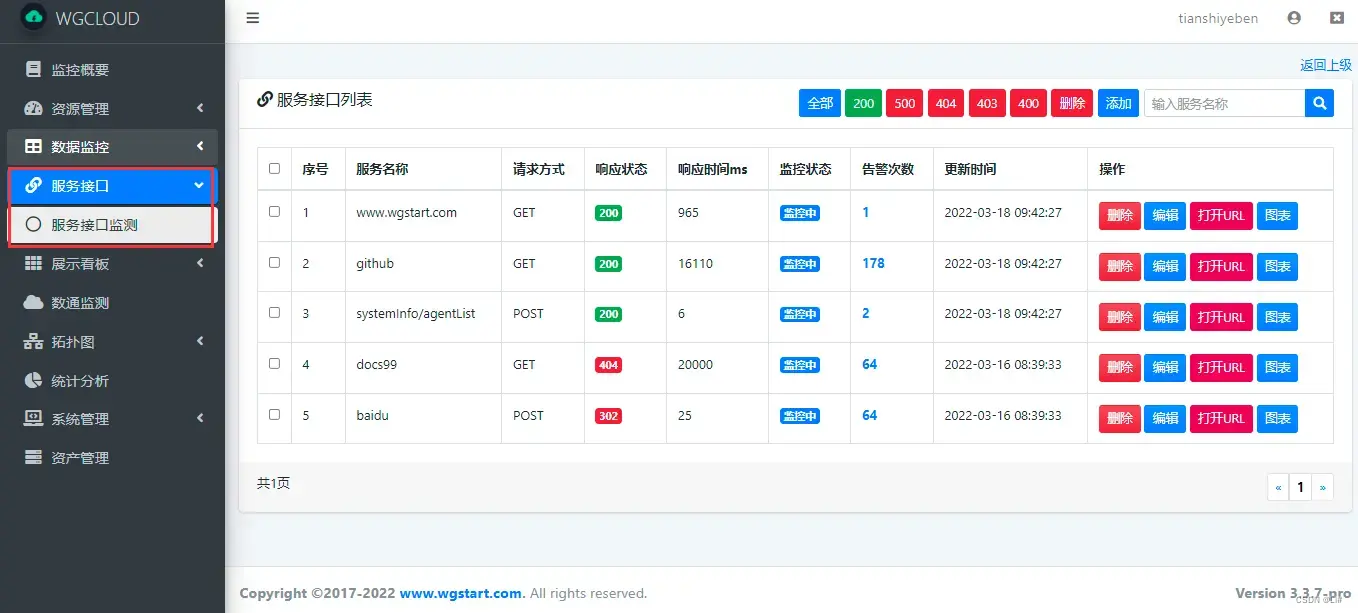 开源免费的服务接口监控工具——WGCLOUD 添加可以选择GET还是POST接口方式,也可以录入post的请求参数,一般就是json格式了,如果不需要就不用填写了,毕竟我们只是监控接口是否通着,通着就说明服务在运行。,它可以监控服务接口的健康状态,并支持GET和POST接口,以及对返回的内容进行校验,支持告警通知,比如邮件、钉钉、微信等,这样可以有效防止我们的网站被篡改。如果对接口有比较高的要求,我们可以对返回内容校验,比如必须包含什么关键字,或者不能包含什么关键字,如果监测到条件适配,就会告警。下图是接口响应时间的趋势图。