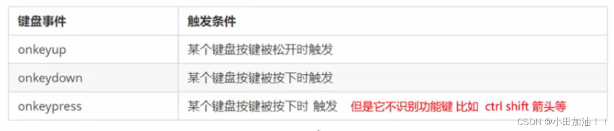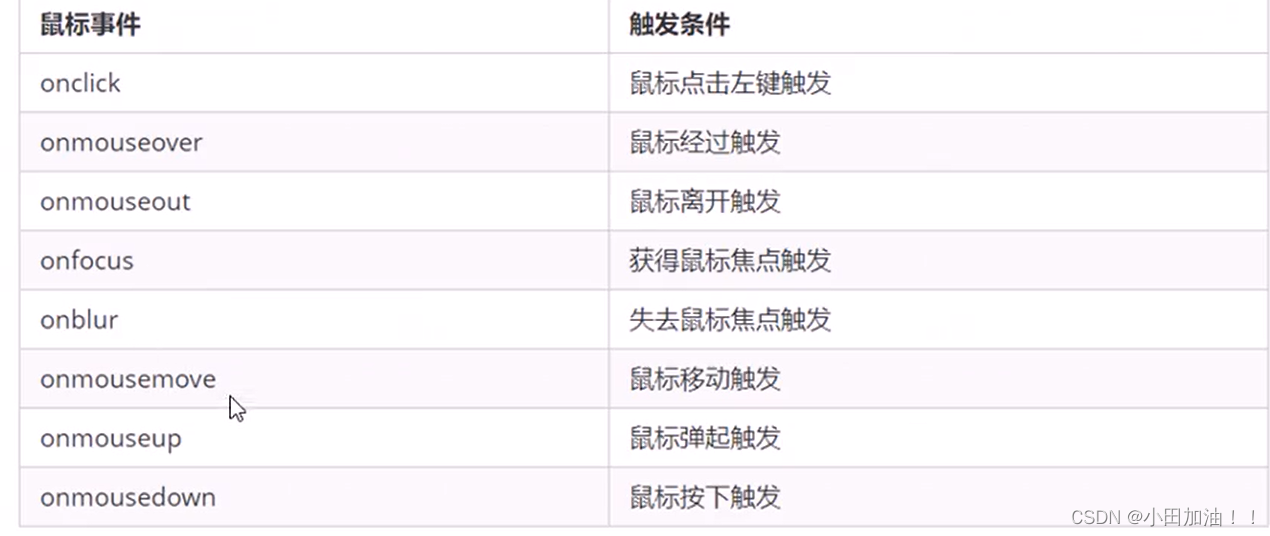 事件是由三部分组成:事件源(谁被触发)、事件类型(怎么触发)、事件处理程序 (通过一个函数赋值的方式完成)
