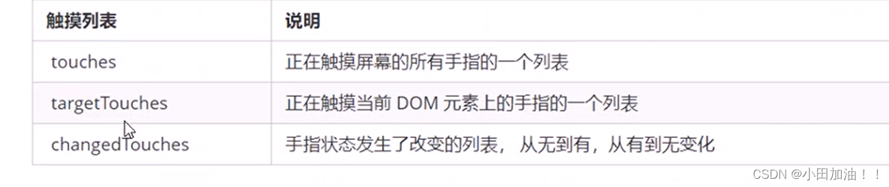 因为我们一般都触摸元素,所以重点记忆targetTouches