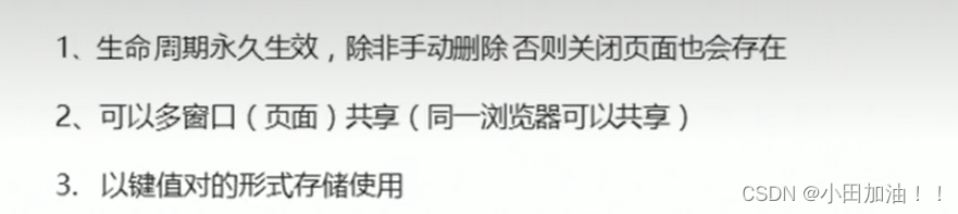 数据存储在用户浏览器中,只能存储字符串,可以将对象JSON.stringify()编码后存储