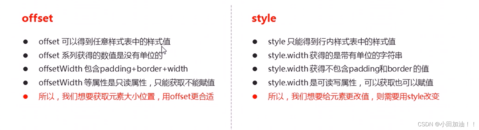 offset可以动态得到该元素的位置、大小(包含padding、border、width)等