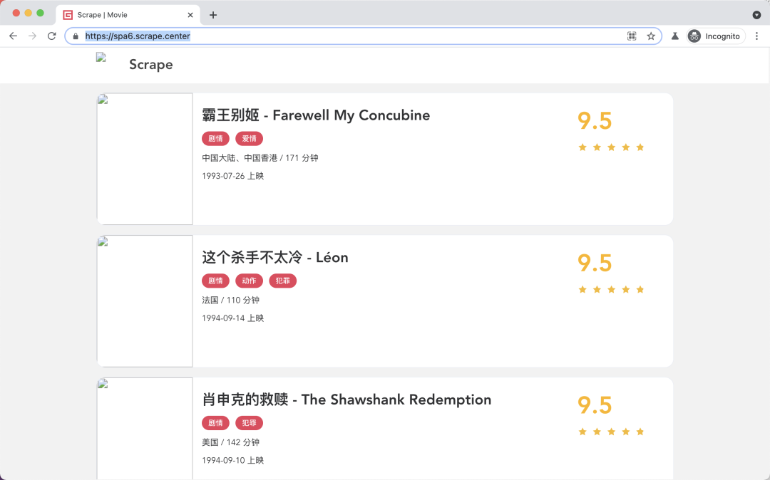 from playwright.sync_api import sync_playwright import re with sync_playwright() as p: browser = p.chromium.launch(headless=False) page = browser.new_page() def cancel_request(route, request): route.abort() page.route(re.compile(r"(\.png)|(\.jpg)"), cancel_request) page.goto("https://spa6.scrape.center/") page.wait_for_load_state('networkidle') page.screenshot(path='no_picture.png') browser.close()